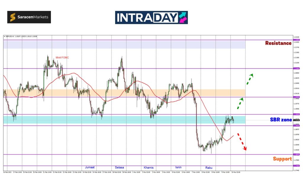 Namun, jika harga mula susut semula di bawah 1.19000 yang menjadi zon SBR (support become resistance) buat harga, paras sokongan 1.18000 akan diuji semula.