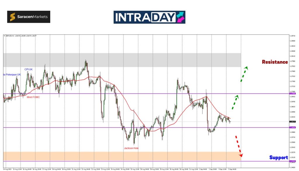 Pada Isnin semalam, harga telah membuat kenaikan semula di atas paras 1.26000 sehingga ke paras 1.26400 sebelum terhalang oleh paras Moving Average 50 (MA50) pada rangka masa 1 jam di carta GBP/USD.