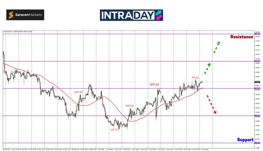 Penurunan yang berlaku pula dilihat kekal menguji zon penting sebagai support semasa iaitu pada 1.06000.