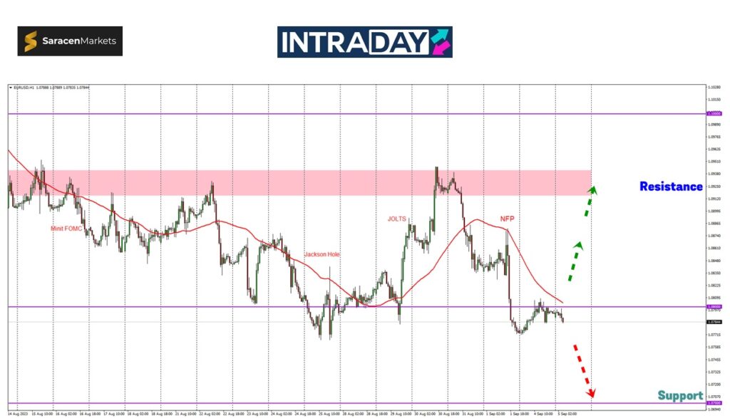 Kenaikan harga pada mulanya dari paras 1.077000 menguji paras 1.08000 namun gagal untuk melanjutkan pendakian lebih tinggi.