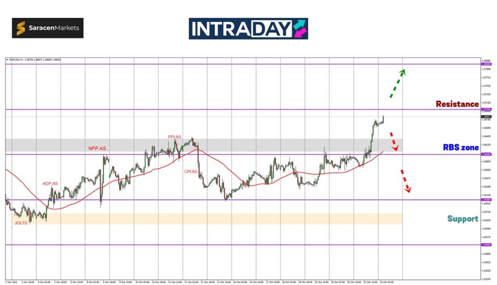 Selepas menembusi 1.06000, harga telah melonjak mencapai ketinggian terbaru pada sekitar 1.06750.