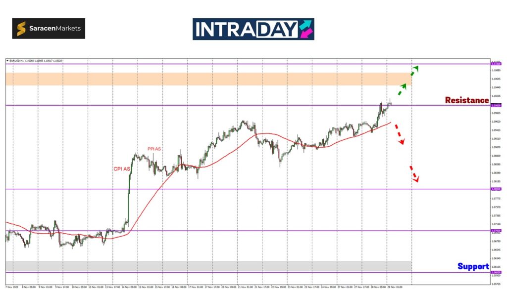 Jangkaan untuk kenaikan yang bakal diteruskan adalah menguji zon sekitar 1.10700 sebelum dilanjutkan menuju paras tumpuan pada ketinggian 1.11000.