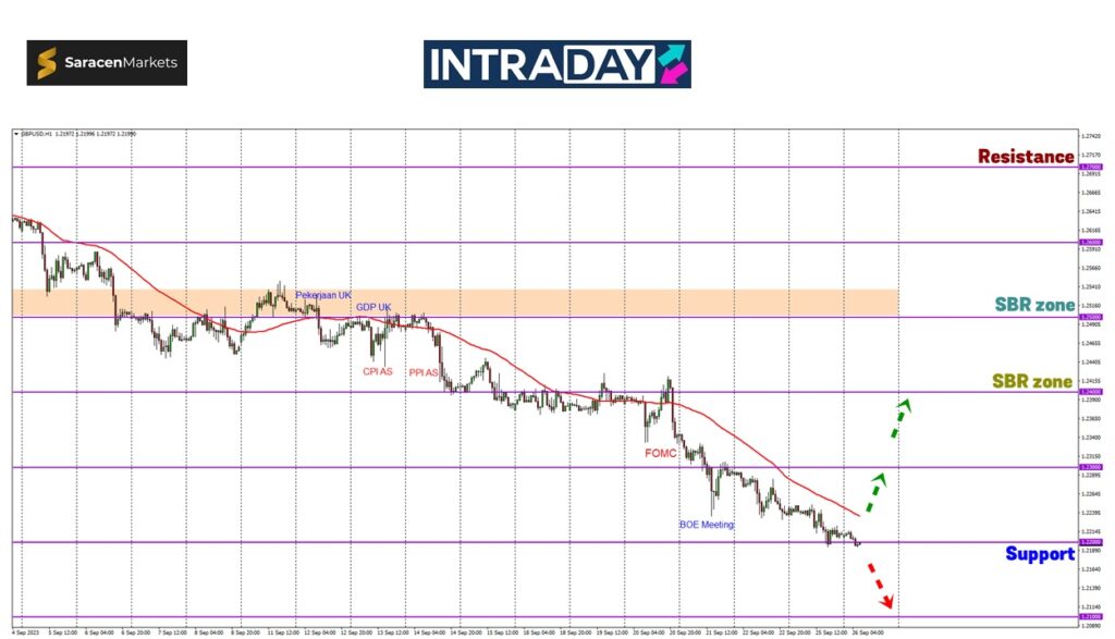 Selepas melepasi support semasa pada 1.22000, penurunan bakal dilanjutkan menuju sekitar 1.21000 sebagai sasarn tumpuan selanjutnya.