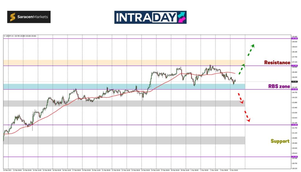 Penurunan awal dilihat akan ke sekitar 134.00 sebelum melanjutkan lagi penurunan mencecah sekitar 132.00 sekiranya US dolar didagangkan terlalu lemah.