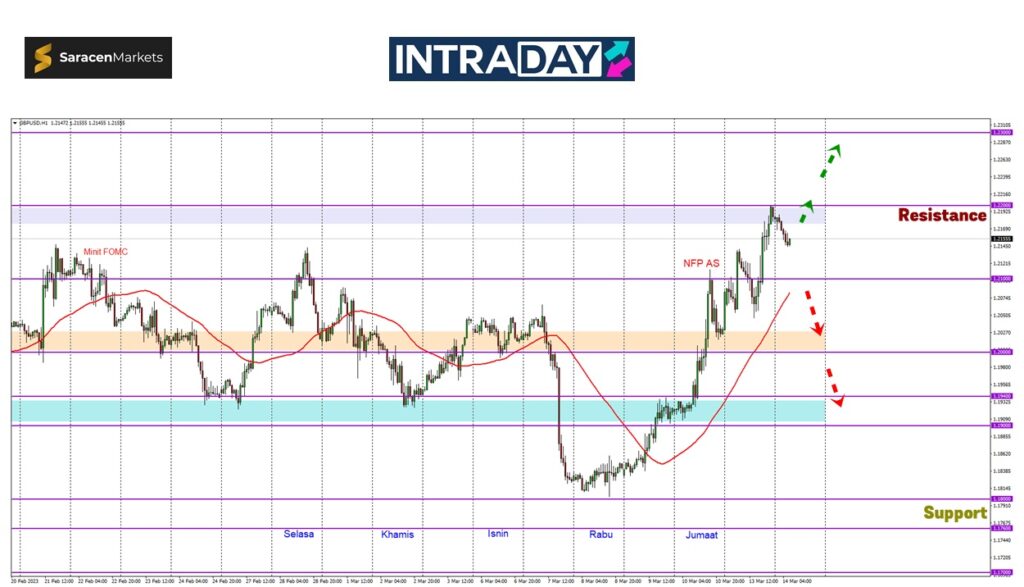 Harga boleh turun menguji kembali paras 1.21000 sebelum meneruskan penurunan lebih rendah ke sekitar 1.20000.