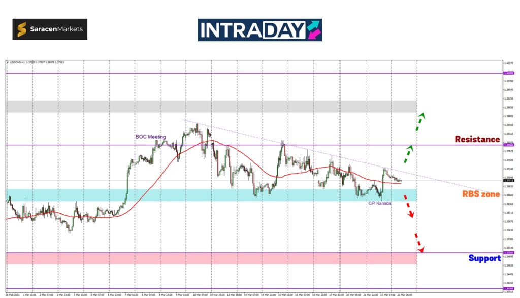 Harga berlegar di zon RBS (resistance become support) 1.36500 sebelum melantun naik semalam ketika data CPI diterbitkan mencapai ketinggian sekitar 1.37300.