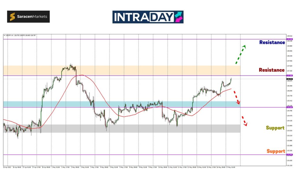 Zon 135.00 akan kembali dituju untuk diuji semula dan jika ditembusi, penurunan akan diteruskan menuju zon support pada 133.700.