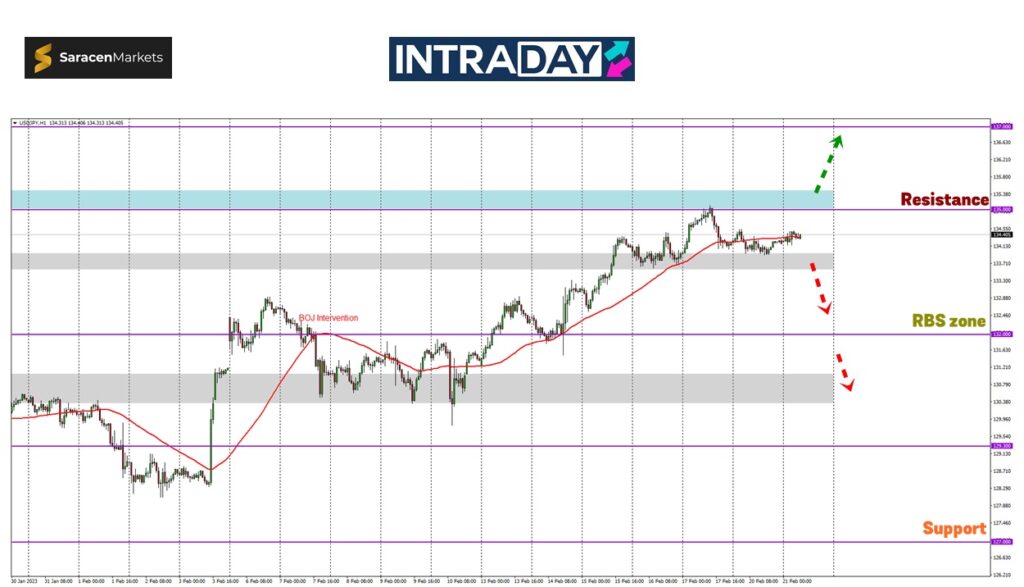 Sebaliknya jika harga menjunam di bawah zon 134.00, penurunan dilihat akan diteruskan ke sekitar 132.00 yang merupakan zon tumpuan harga sebelum ini.