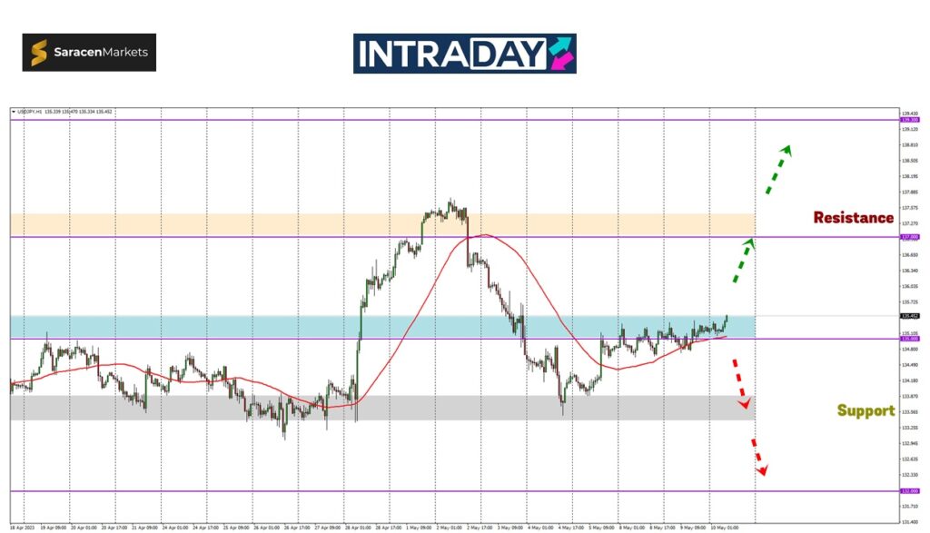 Namun sebaliknya pula jika harga menjunam di bawah zon 135.00 dan menembusi paras sokongan MA50 yang akan menjadi indikasi awal untuk harga menyambung pergerakan bearish.
