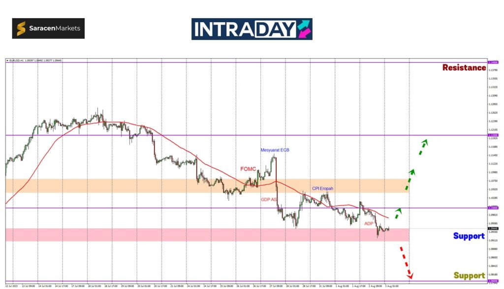 Sekiranya zon 1.09000 berjaya ditembusi selepas ini dengan corak penurunan yang diteruskan, harga bakal menuju pula ke sasaran terendah yang baru pada sekitar 1.08000.