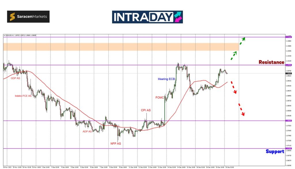 Jika tembus, harga bakal catatkan paras ketinggian terbaru 4 bulan ke sasaran berikutnya sekitar 1.10600 atau ke zon rintangan 1.11000.