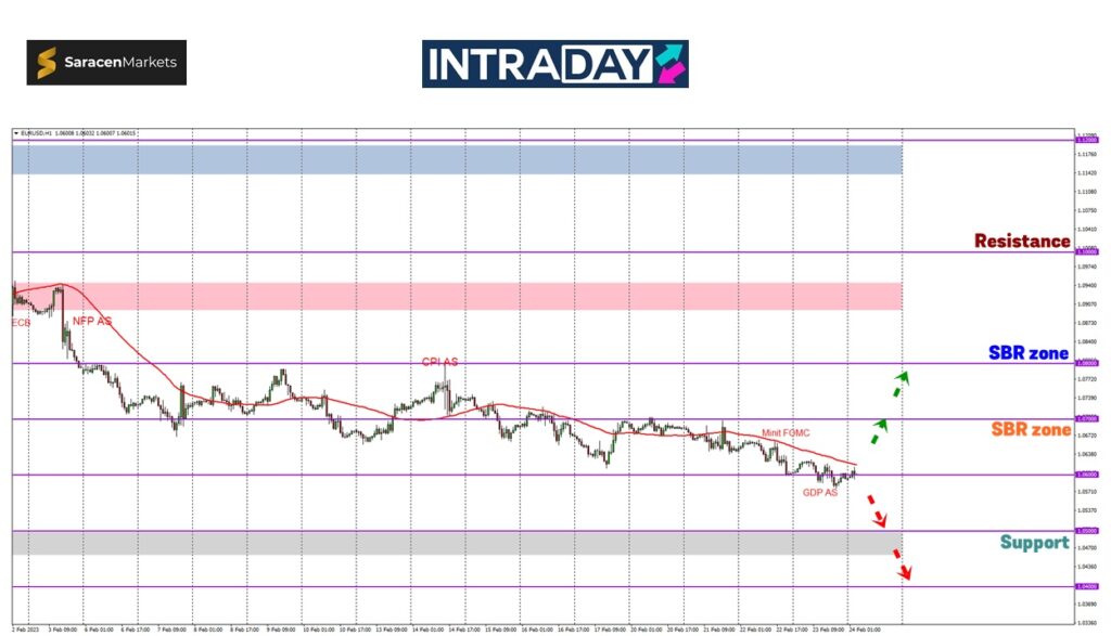 Jika harga melonjak semula dari paras 1.06000, kenaikan dilihat akan diteruskan menuju ke paras 1.07000 untuk harga uji rintangan tersebut.