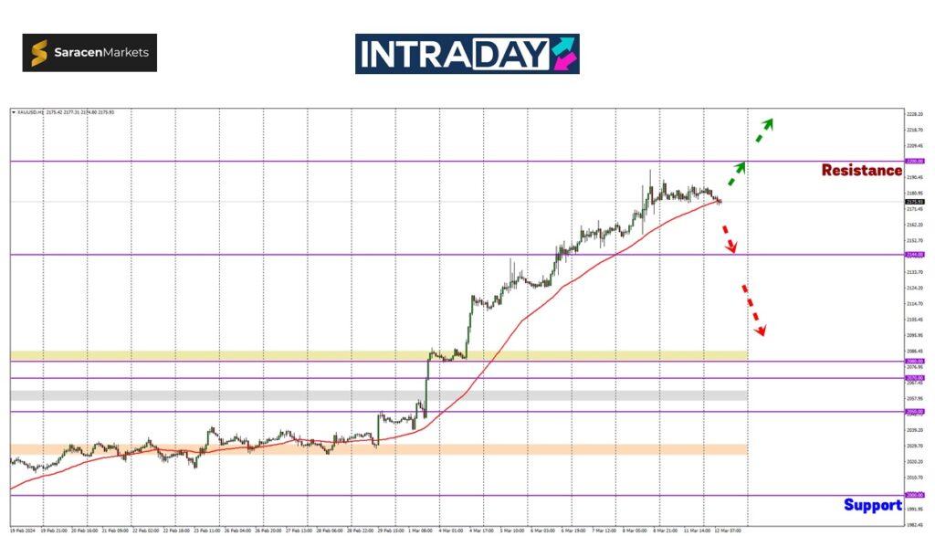 Meneliti carta XAU/USD yang mengukur nilai emas berbanding US dolar, harga dilihat mendatar sekitar paras 2180.00 sepanjang dagangan semalam.