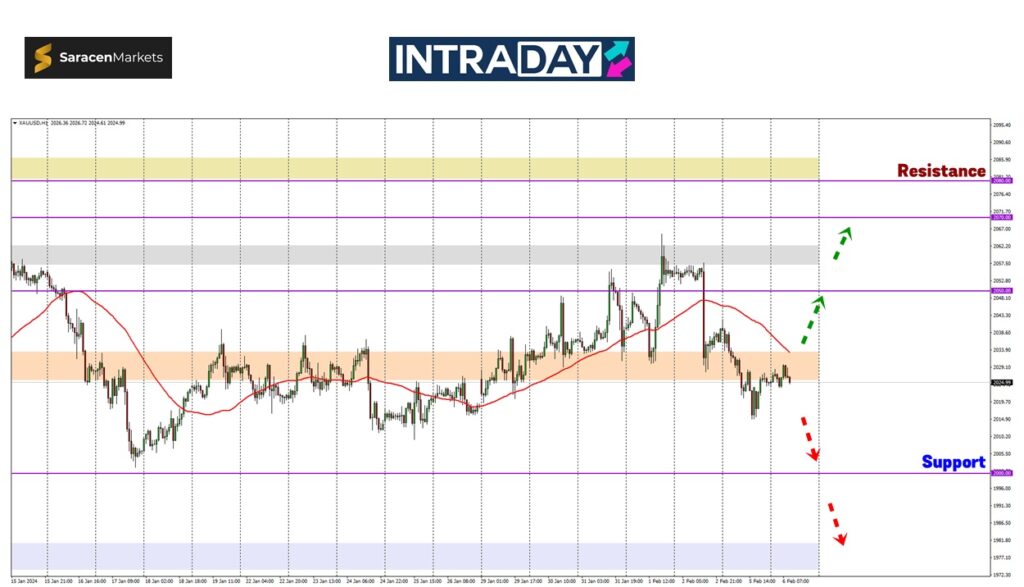 Pada carta XAU/USD yang mengukur nilai emas berbanding US dolar telah menyaksikan terjunan harga pada Jumaat lalu di bawah paras 2050.00 sehingga ke zon 2030.00.