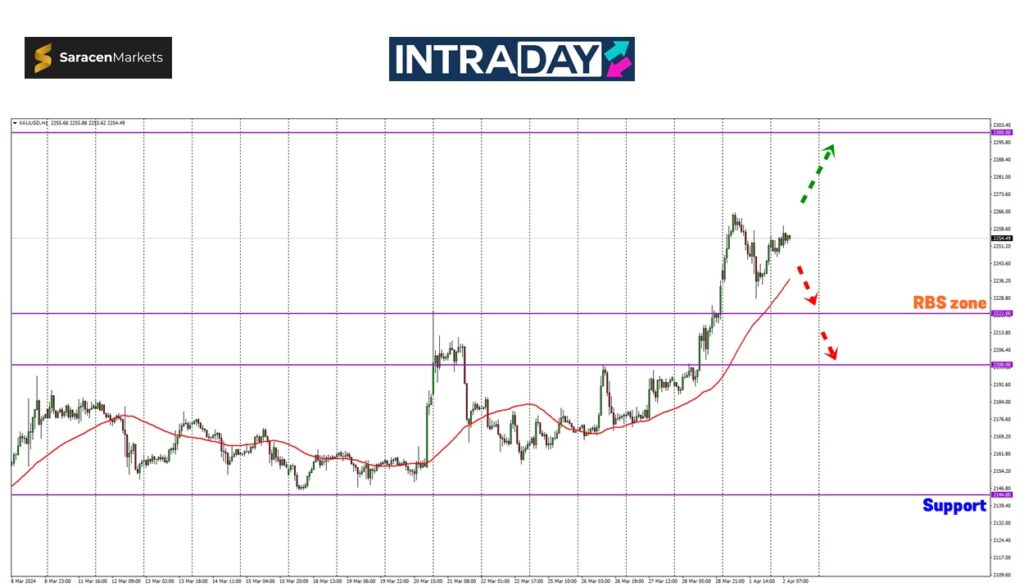 Penurunan lebih rendah akan mula memaparkan isyarat untuk perubahan kepada trend bullish buat emas sebelum harga susut di bawah paras 2200.00 pula.