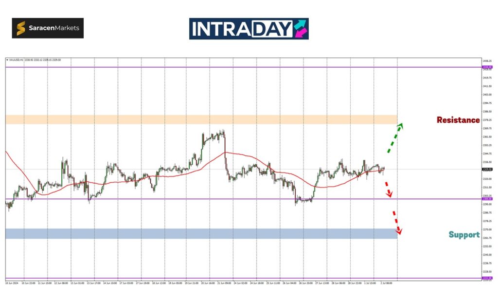 Jika harga membuat penurunan, zon support pada 2300.00 akan kembali menjadi tumpuan seperti yang diuji pada dagangan minggu lepas.
