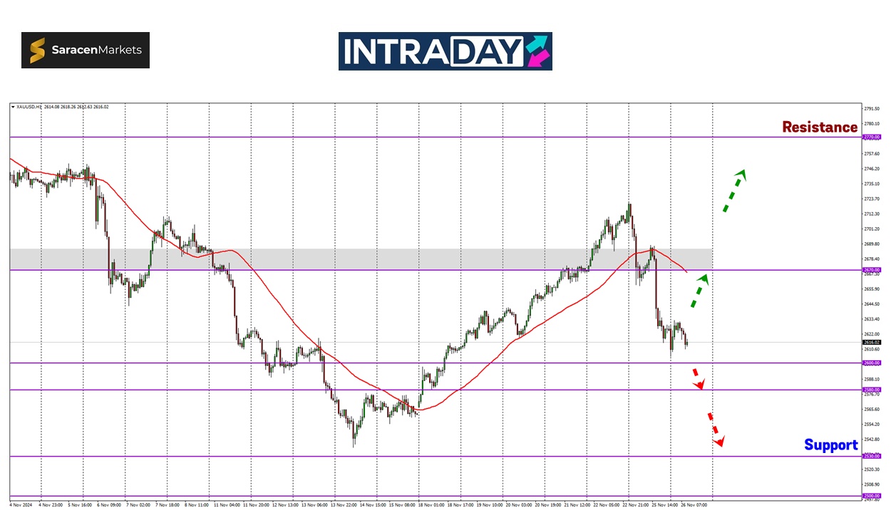 Sekiranya harga terus menjunam sehingga menembusi bawah zon 2600.00, berkemungkinan paras yang dicecah pada 14 November lalu akan menjadi tumpuan semula iaitu berhampiran zon 2540.00.