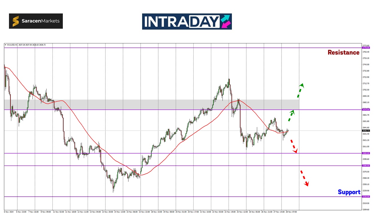 Sekiranya harga masih mencuba untuk membuat kenaikan, zon 2650.00 hingga 2670.00 akan menjadi rintangan yang perlu ditembusi seperti diuji semalam.