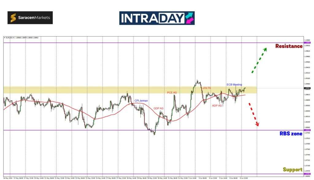 Jika kenaikan berjaya melepasi zon rintangan 1.09000, paras ketinggian terbaru bakal dicatatkan lagi dengan sasaran harga akan beralih pada 1.10000 pula.