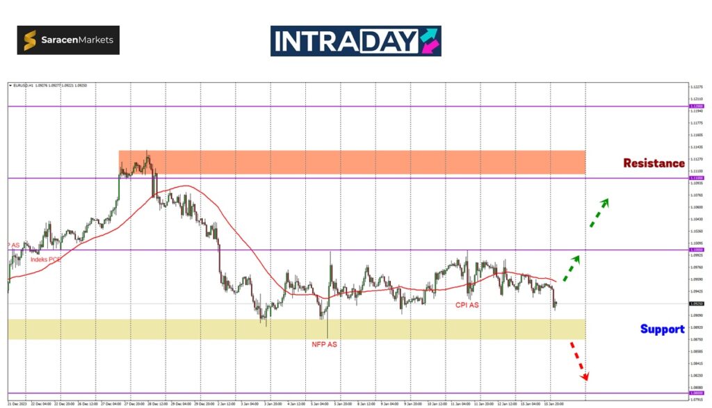 Penurunan harga dijangka akan menuju zon tumpuan 1.08800 dengan reaksi harga di sekitarnya akan diperhatikan.