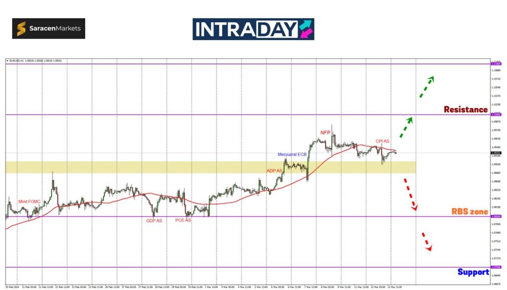 Dengan corak semasa yang sedang dipaparkan, harga dilihat cenderung untuk alami penurunan dengan zon 1.09000 akan terus diuji.