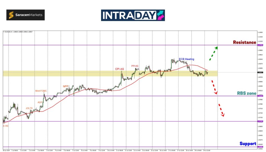 Susut dari zon 1.09000 akan melihatkan harga menuju pula paras sekitar 1.08000 yang juga merupakan zon tumpuan harga pada dagangan awal Julai.