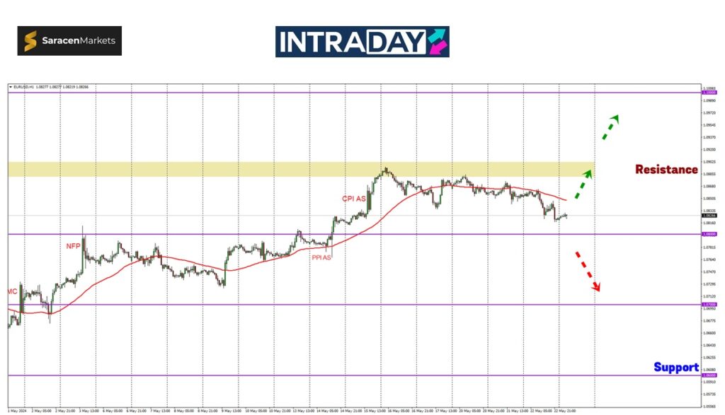Jika penurunan harga berlaku, pelabur akan meneliti reaksi harga yang ditunjukkan pada zon RBS 1.08000 untuk petunjuk arah pergerakan selanjutnya.