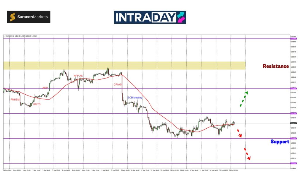 Jika diperhatikan pada carta pasangan mata wang EUR/USD minggu lalu, harga bergerak dalam julat 100 pips antara rintangan 1.07000 dan paras sokongan 1.06000.