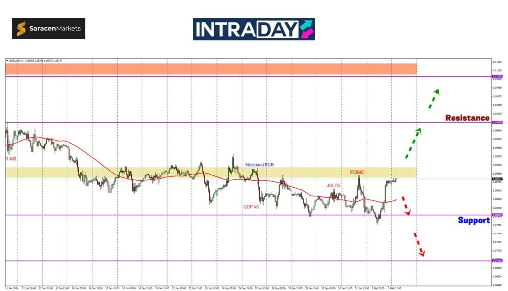 Jika diperhatikan pada carta pasangan mata wang GBP/USD, harga sekali lagi menguji zon support 1.08000 selepas reaksi mesyuarat FOMC semalam.