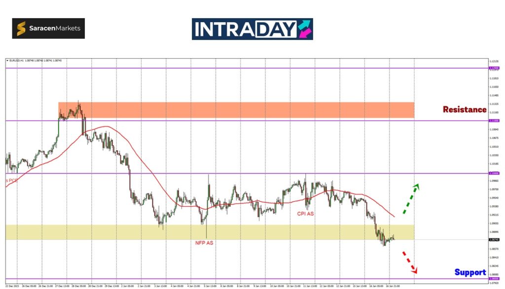 Sasaran seterusnya adalah untuk harga menuju zon support pada 1.08000 sekaligus akan catatkan paras terendah terbaru 5 minggu.