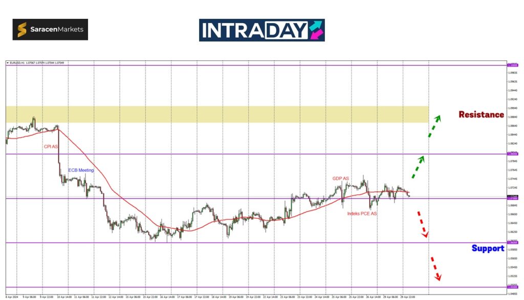 Namun jika harga ditekan jatuh di bawah paras 1.07000, pergerakan trend bearish akan dijangkakan untuk berlaku.