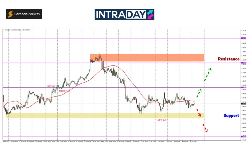 Sebaliknya, jika harga berjaya lonjak semula di atas halangan MA50, kenaikan berkemungkinan diteruskan untuk cuba mencapai semula paras 1.10000.
