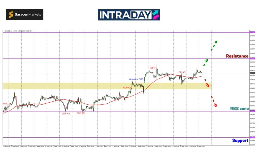 Namun, jika harga kembali menjunam di bawah garisan sokongan MA50, penurunan harga dijangka akan menguji zon tumpuan 1.09000 semula.