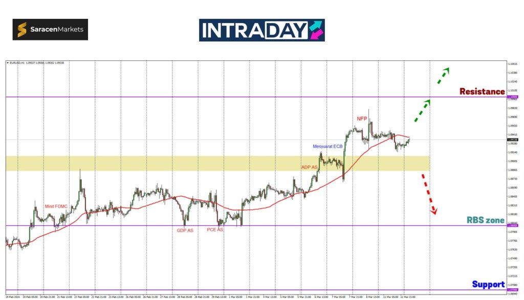 Kenaikan tidak diteruskan sebaliknya harga paparkan penurunan ke sekitar paras 1.09150 setelah melepasi garisan Moving Average 50 (MA50) pada rangka masa 1 jam di carta tersebut yang memberi isyarat bearish.