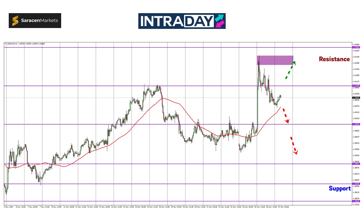 Pada carta pasangan mata wang USD/CAD, harga membuat kenaikan di awal minggu yang dilihat menguji rintangan pada 1.4000 pada Isnin.