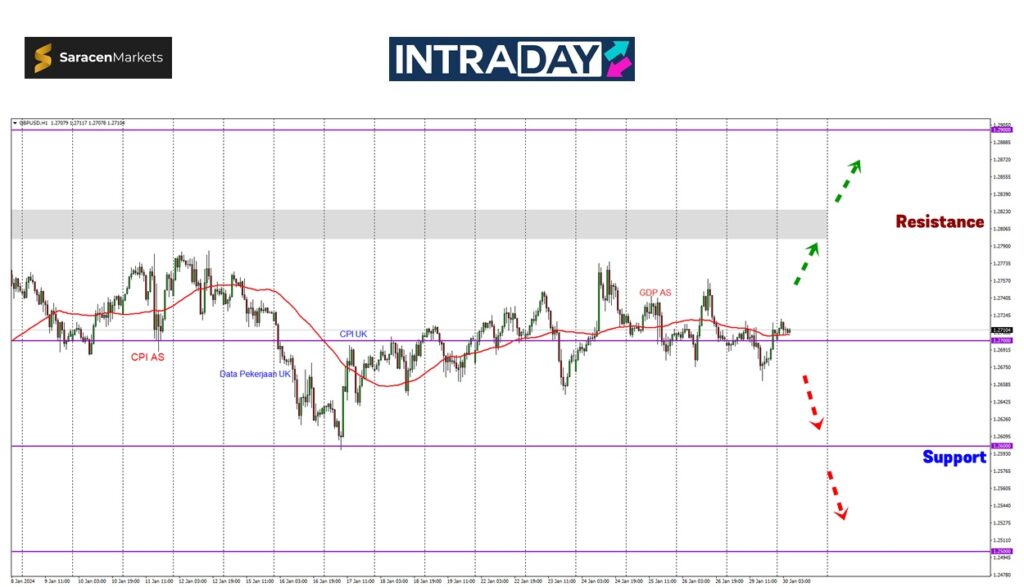 Sebaliknya jika harga melonjak tinggi dari paras 1.27000, zon 1.28000 menjadi sasaran selepas harga juga berjaya mengatasi ketinggian pada dagangan beberapa minggu kebelakangan ini.