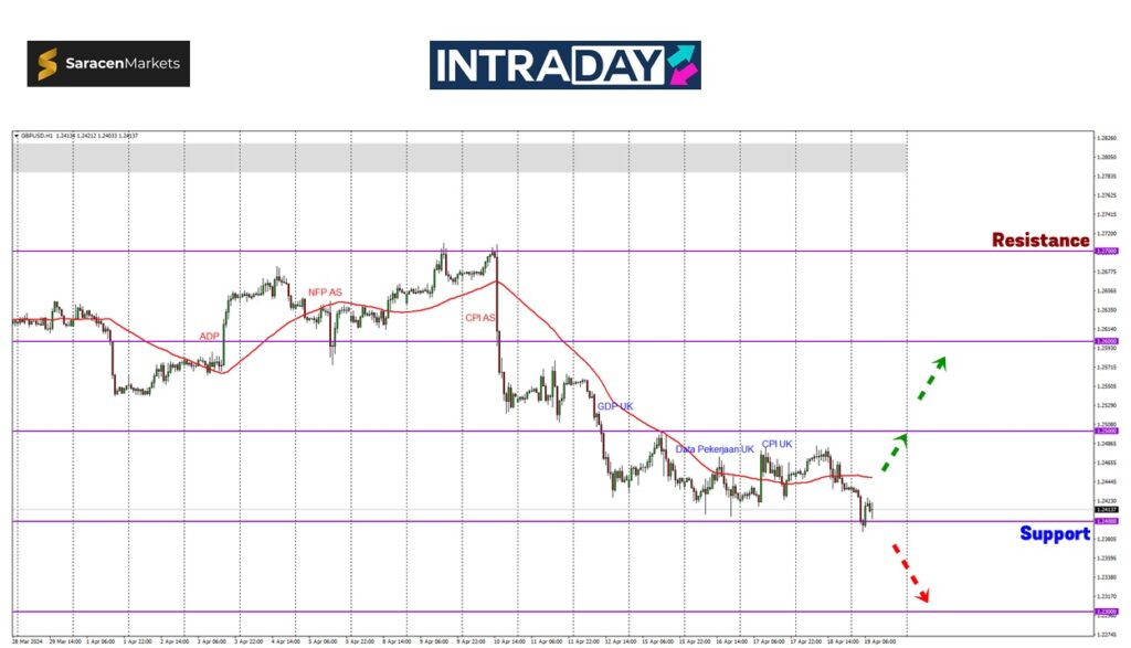 Lonjakan semula harga selepas harga gagal melepasi support 1.24000 akan menjangkakan rintangan pada 1.25000 menjadi sasaran.