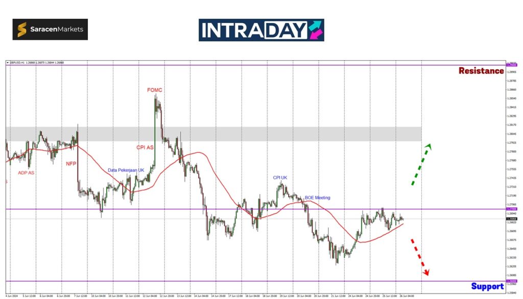 Sebaliknya jika menjunam semula selepas gagal melepasi zon 1.27000, paras yang dicecah pada penutup minggu lalu dilihat akan menjadi tumpuan semula, iaitu paras sekitar 1.26200.