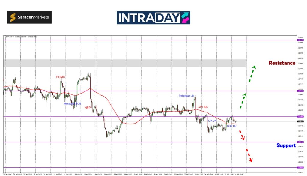 Jika harga berjaya melepasi rintangan tersebut, sasaran untuk kenaikan semula harga dilihat akan cuba untuk mencapai ketinggian pada Selasa lalu sekitar 1.26800.