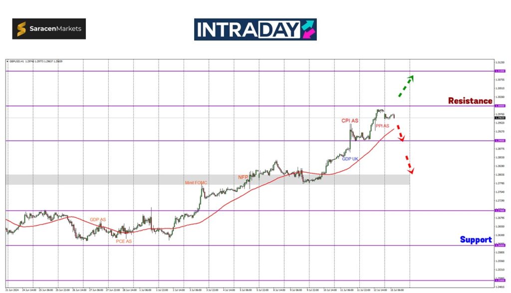 Jika diperhatikan pada carta GBP/USD, harga yang melepasi paras 1.29000 minggu lalu telah melonjak naik hampir menyentuh paras 1.3000 di penutup sesi terakhir.