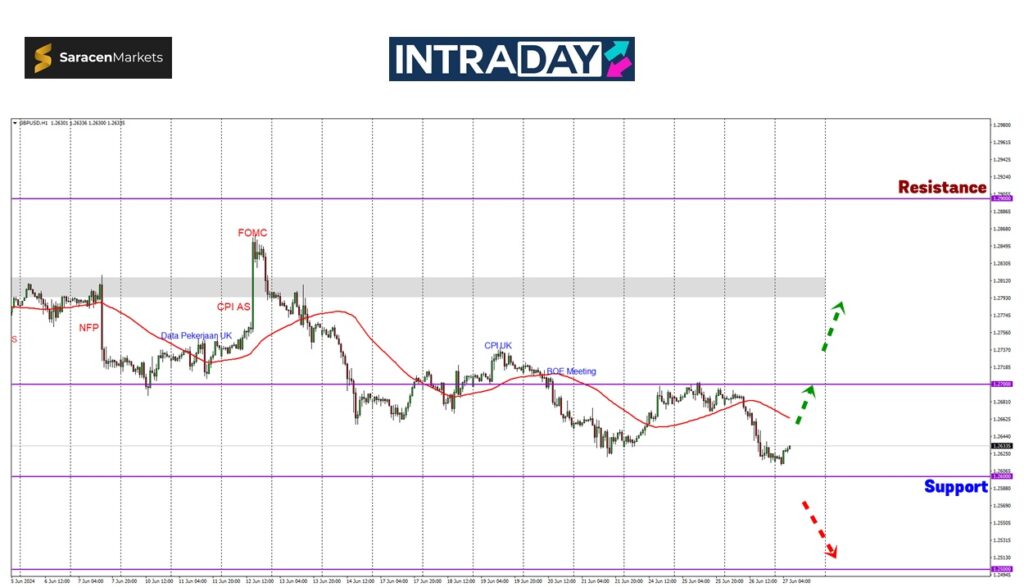 Pergerakan harga perlahan menyambung dagangan sesi Asia pagi ini (Khamis), dan dilihat menghampiri zon support tumpuan pada 1.26000.
