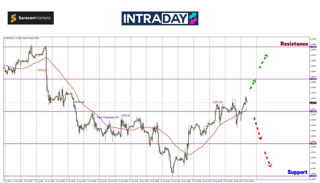 Pada Jumaat lalu, harga telah mencapai paras ketinggian 1.25400 sebelum ditekan jatuh ke paras sekitar 1.24500.