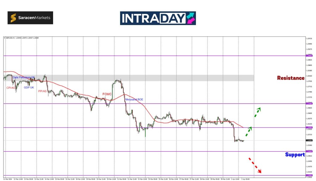 Penurunan harga melepasi zon 1.26000 mencecah paras terendah terbaru 7 minggu pada 1.25400.
