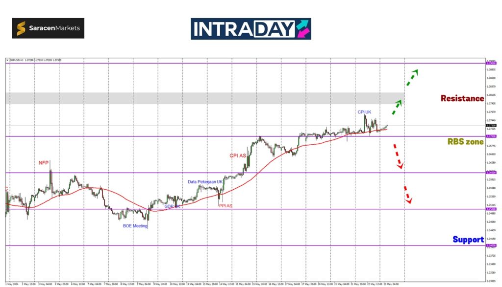 Sekiranya harga masih berjaya bertahan untuk meneruskan kenaikan, paras ketinggian 1.27600 semalam berpotensi untuk diatasi.