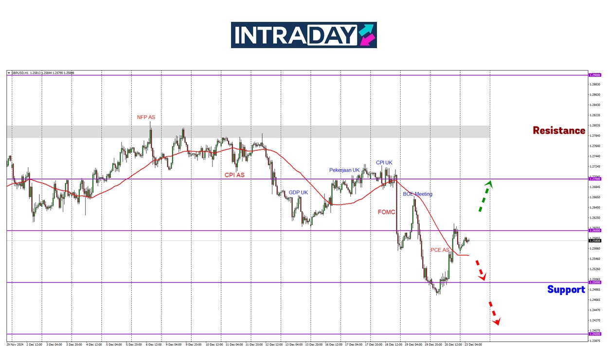Sementara, untuk jangkaan bagi penurunan harga pula selepas dilihat gagal untuk melepasi 1.26000, berkemungkinan harga akan kembali hampiri semula zon 1.25000 yang dilihat sebagai support semasa buat harga.