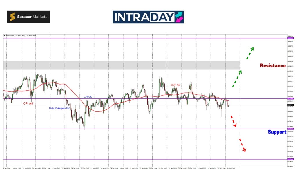 Namun jika kenaikan harga berlaku melepasi paras 1.27000, ini akan menjadi isyarat awal untuk pergerakan bullish menyokong harga keluar dari zon mendatar sebelum ini.