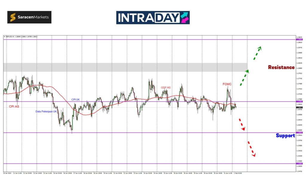 Jika diteruskan ke paras lebih rendah, harga akan mensasarkan pada paras support sebelum ini yang diuji pada pertengahan Januari lalu iaitu 1.26000.