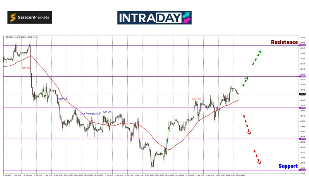 Namun jika harga kembali membuat penurunan, sokongan awal harga berada pada paras 1.25000.