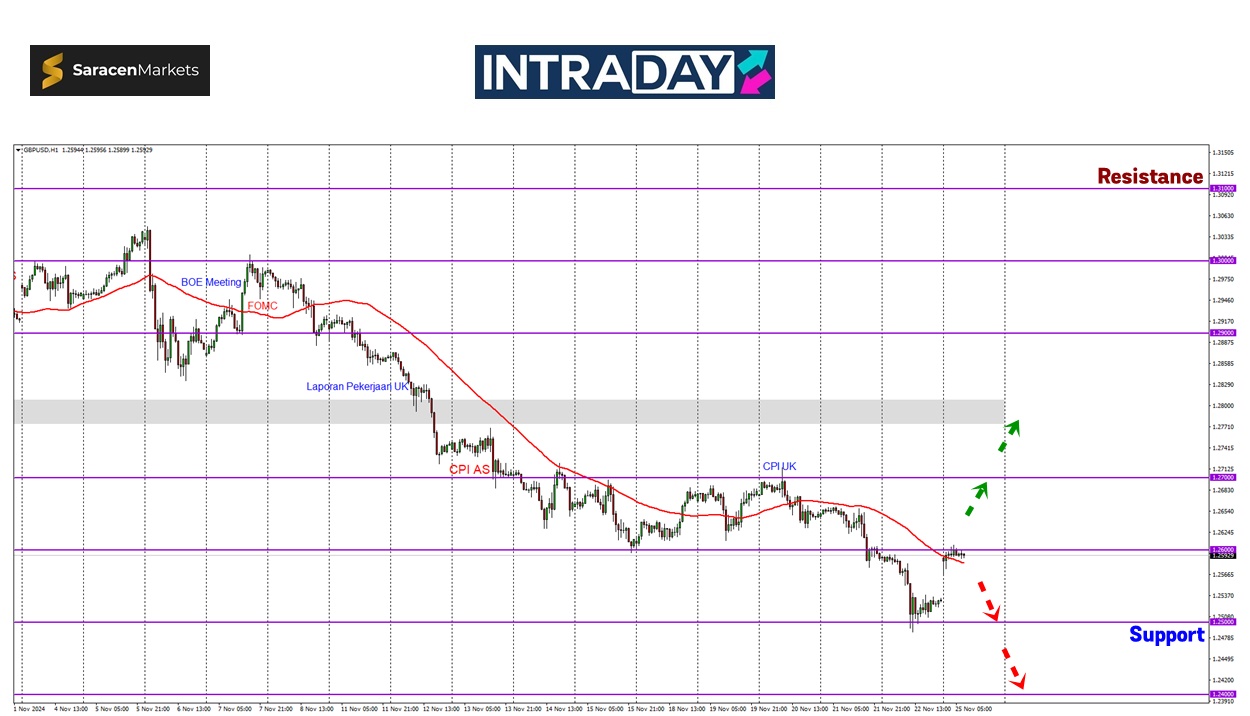 Sebaliknya jika harga kembali menjunam dari paras 1.26000, support pada 1.25000 akan kembali diuji.