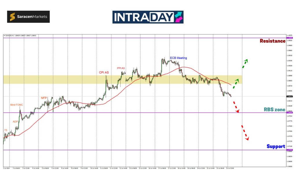 Dengan jangkaan penurunan harga yang bakal dilanjutkan, zon 1.08000 dilihat semakin hampir untuk disentuh harga untuk pelabur memerhati pula reaksi harga di sekitar tersebut.